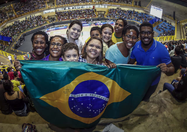 Brazil fans in Goiania had reason to celebrate as the team won both games and some spectators were lucky enough to get up close and personal with star player Anderson Varejao