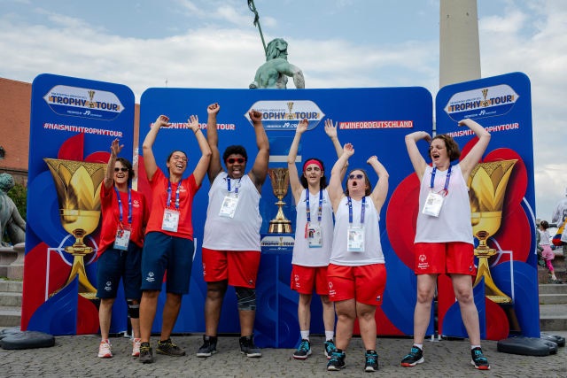 Fans were also able to see the trophy on June 18 at the Special Olympics World Games Festival (below), where it was showcased near the famous Neptune fountain.