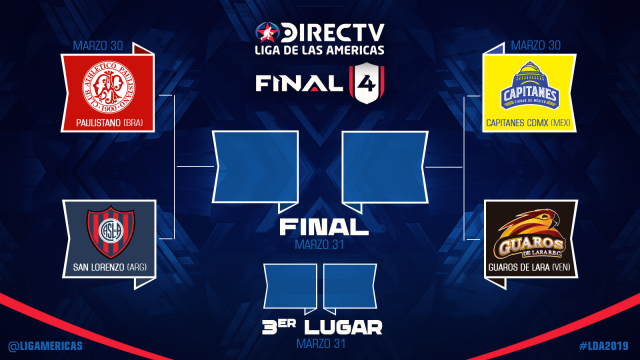 During the first day of the Final4, Capitanes (Mexico) will face Guaros de Lara (Venezuela) and San Lorenzo de Almagro (Buenos Aires) will face Paulistano (Brazil).