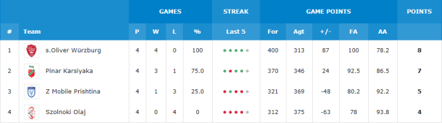 Szolnoki Olaj v Z Mobile Prishtina (H2H: Prishtina +5, 81-76) s.Oliver Wurzburg v Pinar Karsiyaka (H2H: Wurzburg +9, 96-87) [/unordered]Permutations