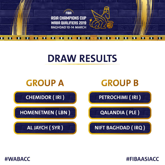 The draw results of the FIBA Asia Champions Cup WABA Qualifiers 2019 are win. The tournament will take place in Baghdad, Iraq from 10-14 March 2019
