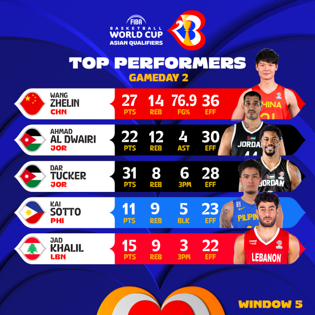 BEIRUT (Lebanon) - Window 5 of the FIBA Basketball World Cup 2023 Asian Qualifiers have come to a close, but not before the stars of Asia put their talents on display for some memorable performances.
