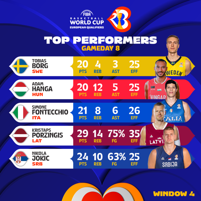 In the game that concluded Window 4 action on Sunday, Tobias Borg did something similar as he posted 20 points and 4 rebounds for a rating of 25 to lead Sweden to a famous road victory, 95-83 over Israel in Tel Aviv.