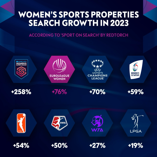 The report, based on search results in 2023 compared to the previous four-year average, also placed EuroLeague Women second among all women's sports properties, only behind Barclays Women's Super League.