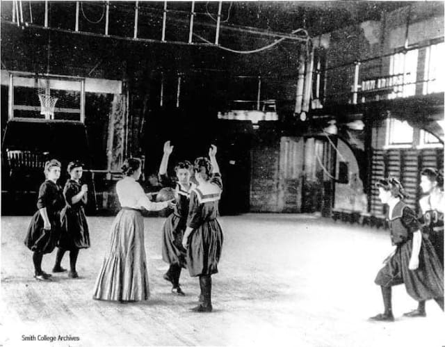 Smith College gymnastics instructor Senda Berenson, an immigrant from Lithuania, held the first women's college game in Northampton, Massachusetts. Eight hundred female students watched and cheered wildly. Almost a century later, Berenson was inducted posthumously into the Naismith Basketball Hall of Fame.
