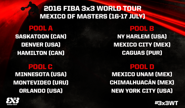 MEXICO DF (2016 FIBA 3x3 World Tour) – Two of the most historic teams of the professional 3x3 circuit – Denver (USA) and Saskatoon (CAN) – will meet as soon as the pool phase following the automatic seeding of the FIBA 3x3 World Tour Mexico DF Masters, which will start the FIBA 3x3 World Tour season on 16-17 July.