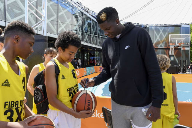Clint Capela visited both the FIBA Headquarters and one of the gyms to sign autographs for his fans and promote his gala game.