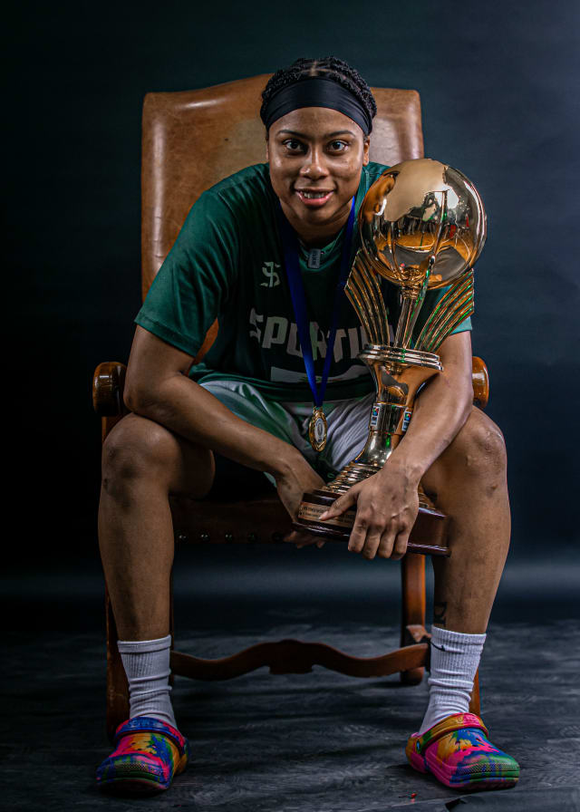 Cierra Dillard exhibits her 2023 AWBL MVP award