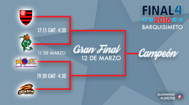 The winners of Friday's two games will face off on Saturday 12 March with the title of 2016 DIRECTV Liga de las Americas champions at stake. Friday's two losing teams will play for third place.