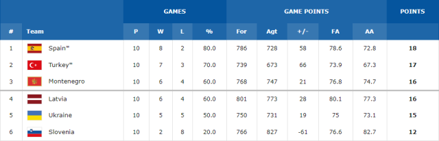 Spain v Turkey Montenegro v Latvia (First game: Montenegro +9, 84-75) Slovenia v Ukraine [/unordered]Qualified: Spain, Turkey