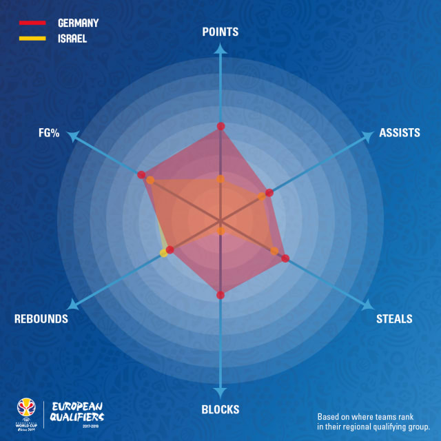 Israel should prove more of a challenge for Germany, particularly on the inside. The Twin Towers of 6ft 8in (2.04m) Richard Howell and 6ft 10in (2.09m) Jake Cohen provide a physically imposing presence. As Israel's top two scorers (11.7 and 13.4 respectively) and rebounders (5.7 and 4.8 respectively), the duo are capable of mixing things up in the post.