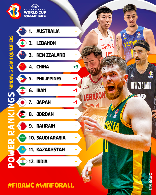 Iran could be higher after beating Japan and forcing Australia to break a sweat, but couldn't finish strong against the Boomers and here they are. Because of their two losses to Kazakhstan early in the Qualifiers, Iran's World Cup qualification hopes are still shaky. A win over China in the first game of Window 5 would be massive. | ⬇️1️⃣ |