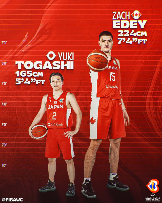 Japan and Angola both have a pair of short guards - both of them featuring players standing 1.65m (5ft 6in) in Childe Dundao for the Africans and Yuki Togashi for Japan. Their backcourt mates are Yuki Kawamura at 1.72m (5ft 8in) and Gerson Domingos at 1.79m (5ft 10in). But the list of the 10 shortest players also includes a number of players who will have leading roles including Brazil's Yago Santos, Sajjad Mashayeskhi of Iran and Puerto Rican Tremont Waters.