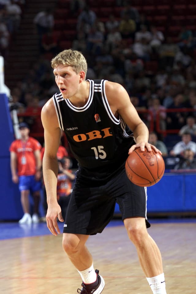 The legendary Nowitzki made his senior team debut for Germany at 19 in the EuroBasket 1997 Semi-Final Round and played just three minutes in a 73-66 win over Portugal. He had no points, although he didn't attempt a shot, and also no rebounds. Nowitzki (seen above at EuroBasket 1999) blossomed into Germany's best-ever player and was MVP of EuroBasket 2005. As the main man of the Dallas Mavericks for many years, he became an NBA MVP (2007) and an NBA champion (2011).