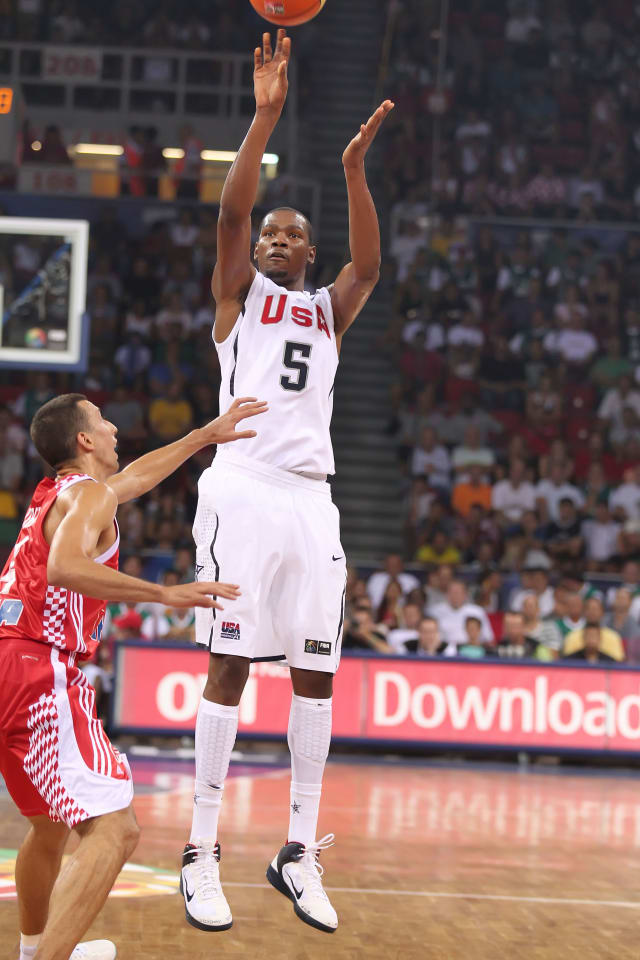 There were a lot of questions about the USA heading into the 2010 World Cup with none of the players from the 2008 Olympic gold medal winning team involved and Durant, 21, answered almost all of them. In his first competitive game, a 106-78 win over Croatia, he had 14 points, eight rebounds, three assists and a steal. Durant went on to lead USA to the title and was named MVP of the event. In the 2013-14 campaign, Durant, then a star with Oklahoma City, was named MVP of the NBA.