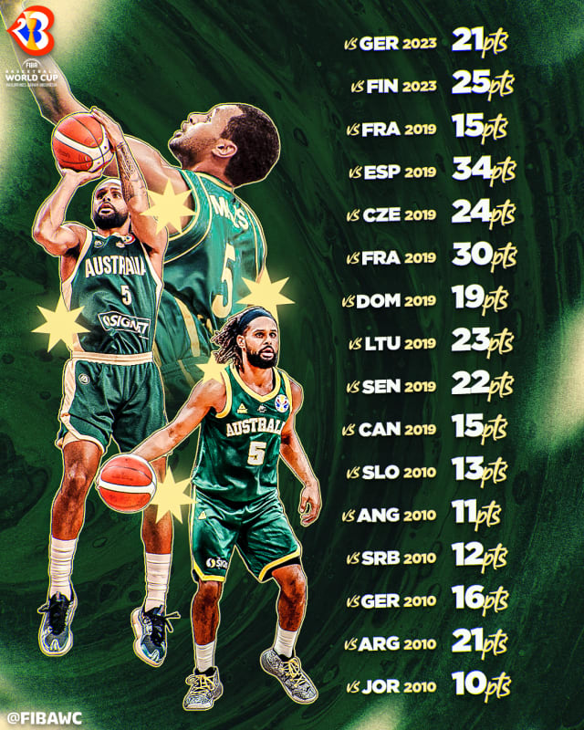 OKINAWA (Japan) - Patty Mills further cemented his place as one of Australia's greatest as he became the Boomers' second all-time leading scorer in the FIBA Basketball World Cup.