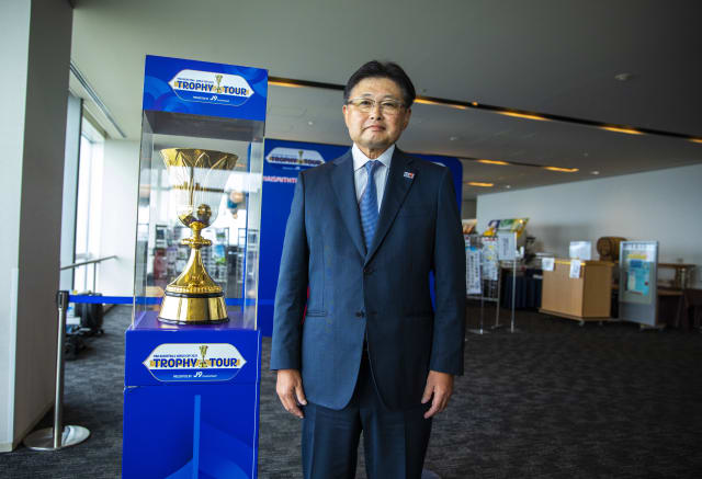 The President of the Niigata Basketball Association, Toshiaki Kuriyama (above), was on hand when the trophy arrived in his city.