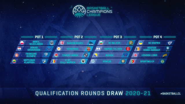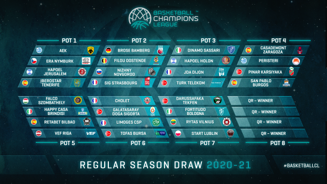The Draw for the 2020-21 Basketball Champions League Regular Season will be completed once all teams have been drawn. The Regular Season will tip off on October 13.