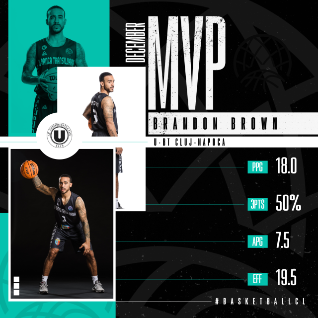 MIES (Switzerland) - Brandon Brown is a well known name in the Basketball Champions League, from his days at Nizhny Novgorod in 2019-20. He is back, and back to his best, picking up the last MVP of the month award in 2021 after leading U-BT Cluj Napoca straight to the Round of 16.