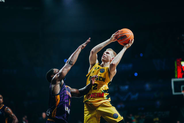 Jacob Patrick with MHP RIESEN Ludwigsburg at the Basketball Champions League Final Four in 2022.