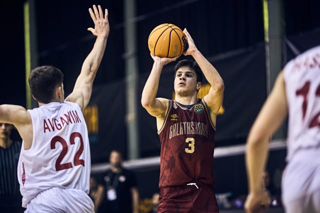 Sarp Ugurluoglu knocking down a three-ball for Galatasaray