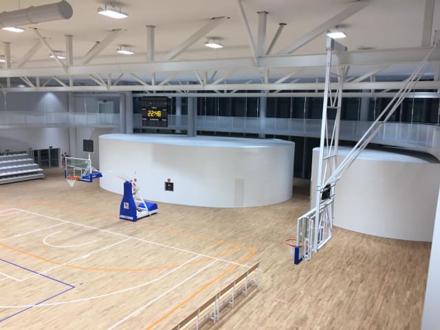 Sport System recently installed a complete package of equipment and furnishings at the location, marrying style and functionality.  The Equipment & Venue Centre partner provided a pair of Hydroplay Ace basketball backstops and a pair of ceiling-mounted basketball backstops.