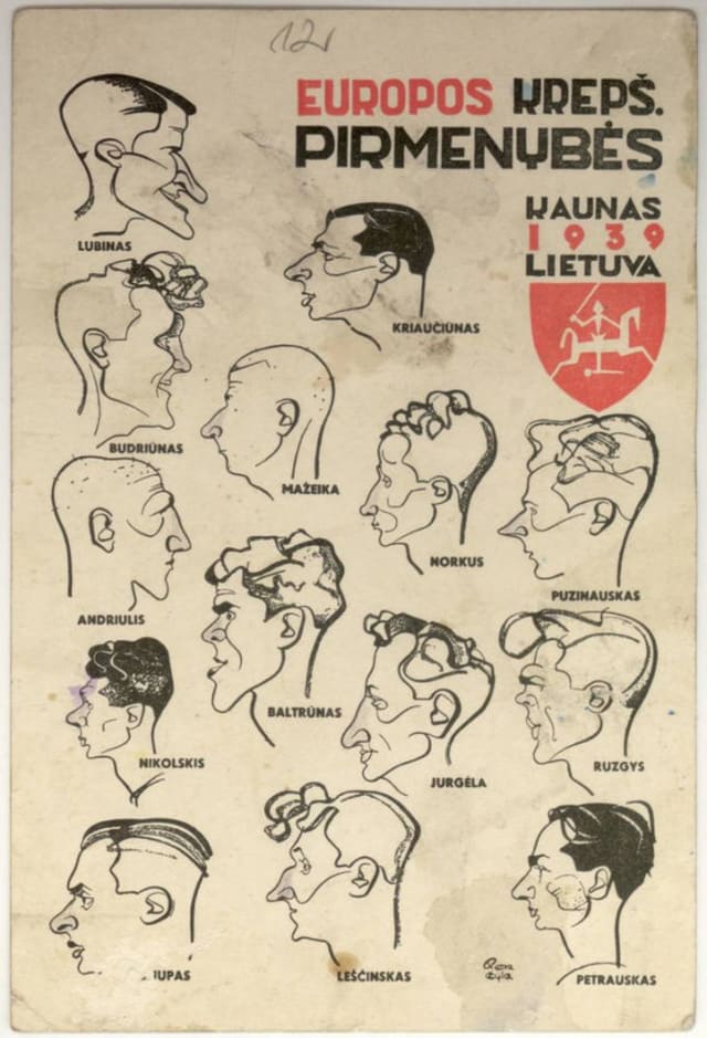 Caricatures of the players that won EuroBasket 1939 in Kaunas