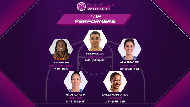 They include Joy Brown who inspired Valencia Basket to a vital 71-61 victory at Lointek Gernika Bizkaia to help the first-timers put one foot into the last eight of the competition. She shone brightly with a strong double-double after amassing 17 points and 13 rebounds.