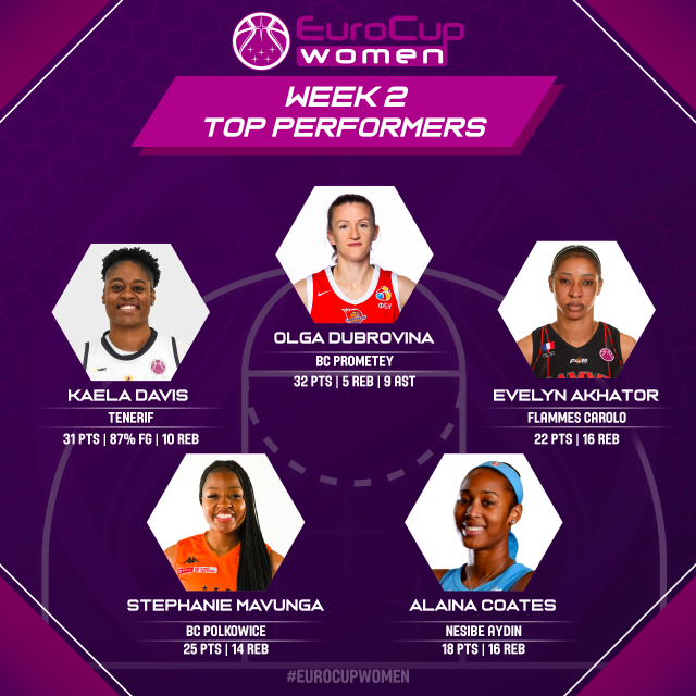 Steph Mavunga excelled for BC Polkowice as they moved past Hatayspor 83-72 thanks mainly to her contribution of 25 points and 14 rebounds, with a spot in the best performers also going to Milica Jovanovic of DVTK. The Montenegrin was on fire with 26 points, 7 rebounds and 4 assists in a 65-58 win against Nika Syktyvkar.