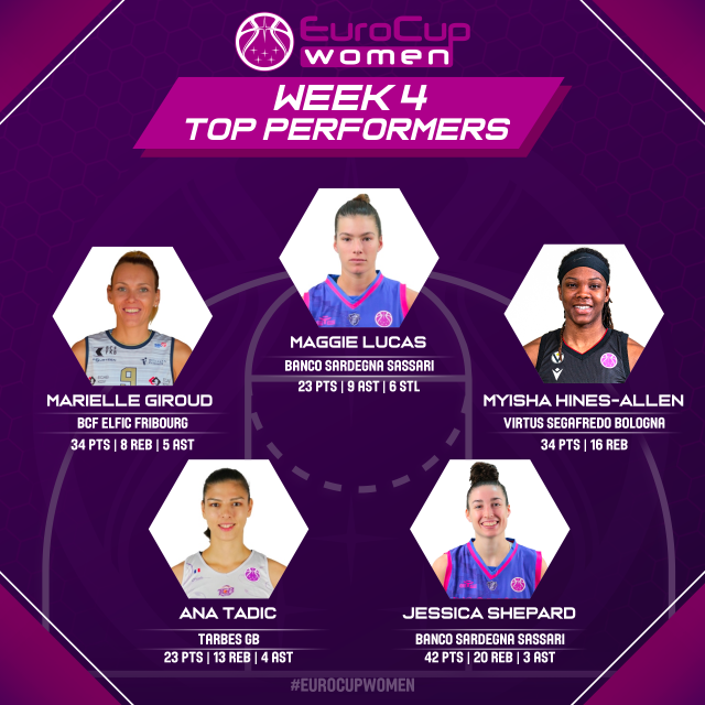 MUNICH (Germany) - Jessica Shepard of Banco Sardegna Sassari stole the limelight on Gameday 4 of EuroCup Women after posting the best performance in the competition this season.