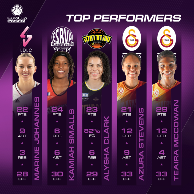 MUNICH (Germany) - Galatasaray Cagdas Factoring duo Azura Stevens and Teaira McCowan share Top Performer honors after both proved to be the main architects of an impressive victory against BLMA.