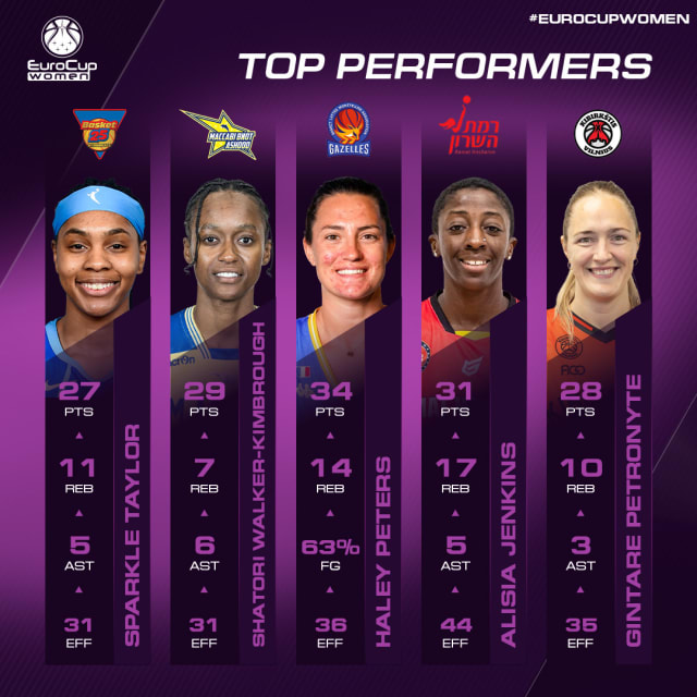 MUNICH (Germany) - The first week of EuroCup Women Regular Season action witnessed a string of dramatic games and some superb displays that featured sky-high performance efficiency valuations.