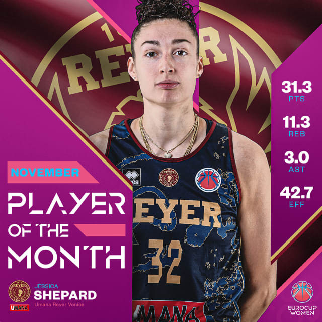 MUNICH (Germany) - Jessica Shepard has completed a phenomenal month with Umana Reyer Venezia and has been recognized for her incredible efforts by being crowned EuroCup Women MVP for November.
