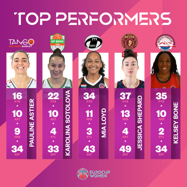 Karolina Sotolova found top gear for KP Tany Brno to send her team to the Play-Off Round 1 as she excelled in a 101-63 triumph against Antalya BSB Toroslar BC, with the guard registering a double-double of 22 points and 10 assists, with 6 rebounds and 4 steals.
