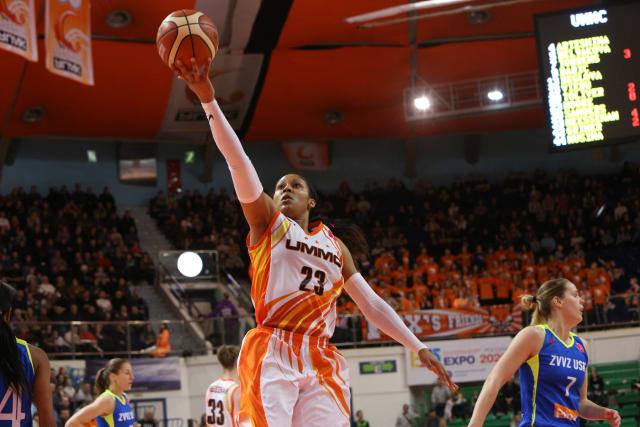 Like Maya Moore in Ekaterinburg, Sandrine Gruda was a mid-season acquisition, also with an immediate impact. Playing against a host of her French national side teammates this week, she went 7-of-9 from the field against an undersized Bourges frontcourt.