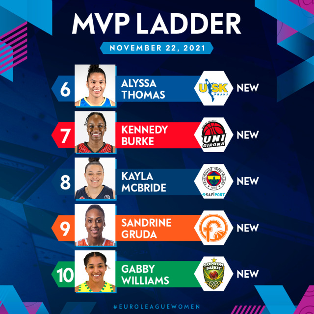 MUNICH (Germany) - It's time to issue the second MVP Ladder of the EuroLeague Women Regular Season and there's a particularly strong theme as we welcome a number of new faces into the race.