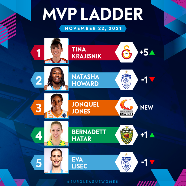 MUNICH (Germany) - It's time to issue the second volume of the MVP Ladder of the EuroLeague Women Regular Season and there's a particularly strong theme as we welcome a number of new faces into the race.