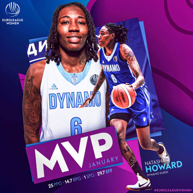 MUNICH (Germany) - Natasha Howard has been named EuroLeague Women MVP for the month of January after her performances ensured Dynamo Kursk a spot in the Quarter-Finals.