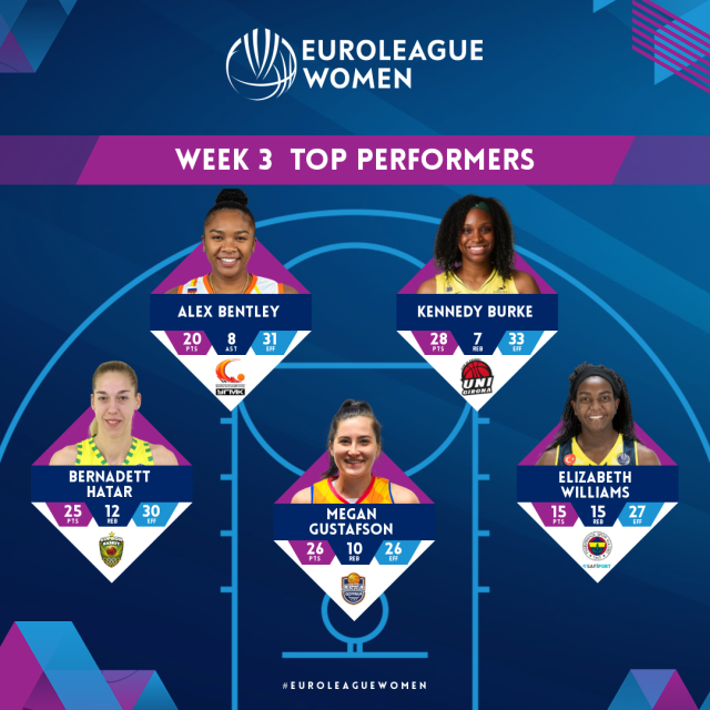 MUNICH (Germany) - The third week of EuroLeague Women action witnessed some excellent displays and it was Kennedy Burke of Spar Girona who wrote the headlines as she led her team past Fenerbahce Safiport.