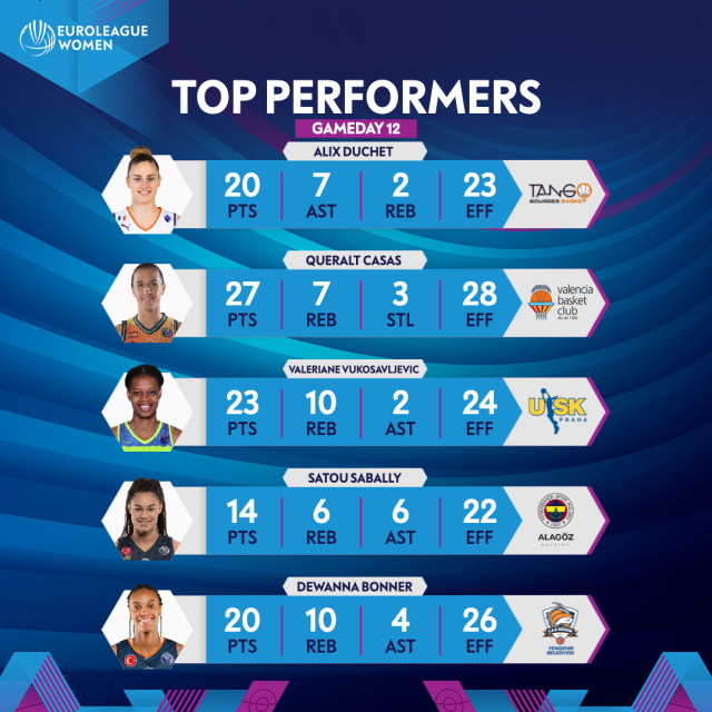 Top Performers Week 12: Casas, Bonner, Vukosavljevic, Duchet, Sabally