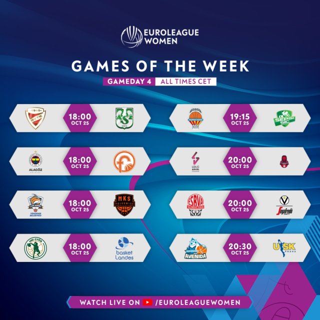 You can watch the live broadcast of the game between Fenerbahce Alagoz Holding and Beretta Famila Schio with commentary on the EuroLeague Women YouTube channel on Wednesday, October 25 at 19:00 CET.