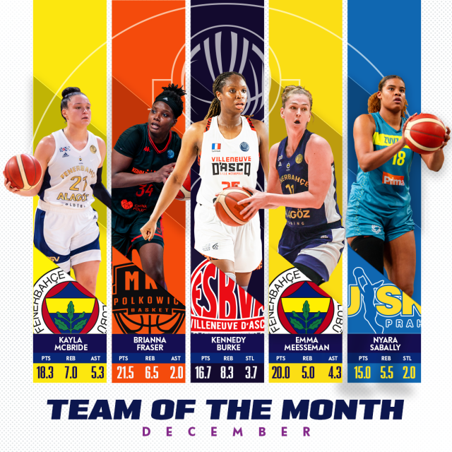 She is joined by her Fenerbahce colleague Kayla McBride who has continued to bring the backcourt noise for the Istanbul juggernauts. The guard has been electric all season long and didn't miss a beat during December after averaging 22.0 for performance efficiency, plus 18.3 points, 7.0 rebounds and 5.3 assists per outing.
