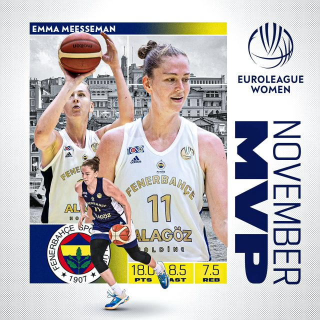 MUNICH (Germany) - Fenerbahce Alagoz Holding standout Emma Meesseman has been handed EuroLeague Women MVP honors for the month of November after helping preserve the unbeaten status of the current holders.