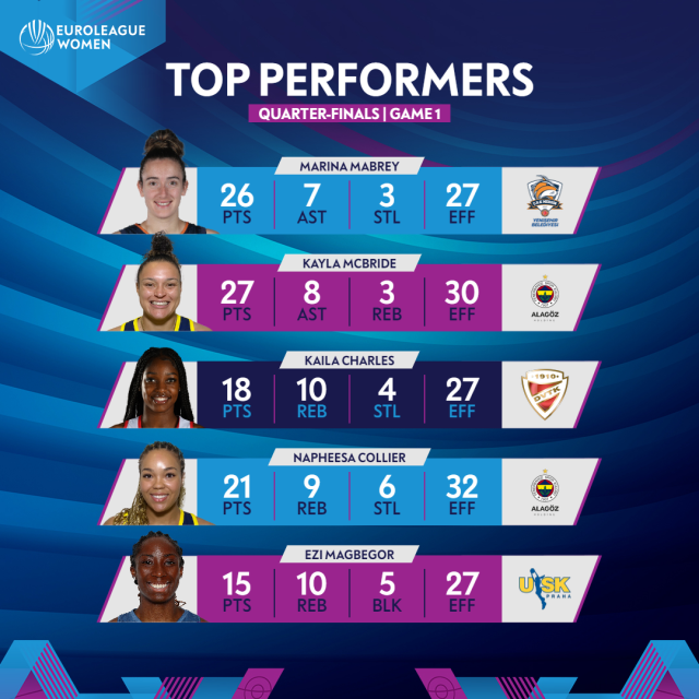 MUNICH (Germany) - There was an array of stellar individual displays as the curtain was raised on the EuroLeague Women post-season during the first night of the Quarter-Finals.