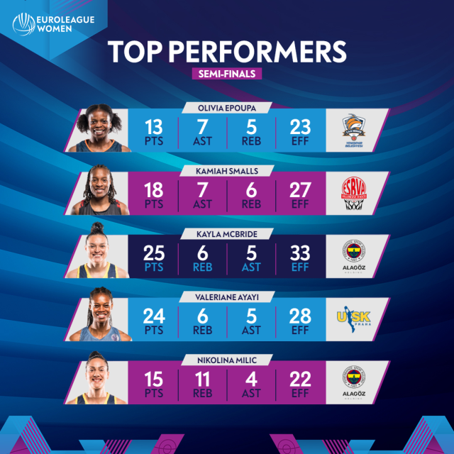 MERSIN (Türkiye) - There were some outstanding individual performances in Friday's EuroLeague Women Semi-Finals, with players from all Final Four clubs teams landing in the Top Performers lineup.