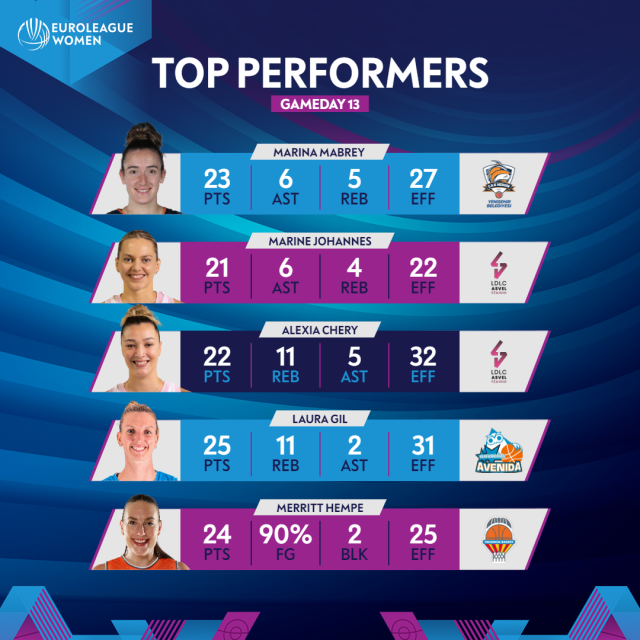 MUNICH (Germany) - With time about to expire on another EuroLeague Women Regular Season, a number of players showed their best face with excellent displays during Gameday 13.