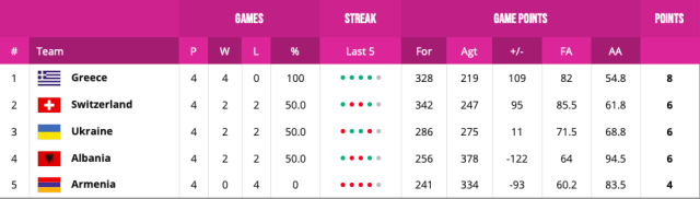 Day 7 results: Greece left Yerevan without a perfect streak posted as they worked hard to see off Ukraine 59-54. Hosts Armenia were denied the victory they craved as they finished 0-4 after being taken down 79-72 by Albania.as Klea Verru showed out yet again with 27 points and 7 boards.