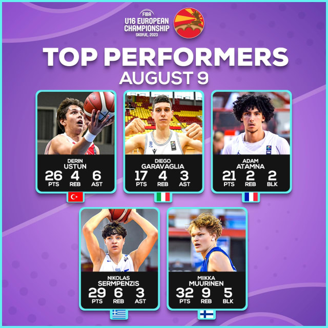 Miikka Muurinen had a big game for Finland with a 28 efficiency although it came in a loss to Greece. He poured in a tournament high 32 points as he made 12-of-28 shots and 5-of-5 free throws. Muurinen also picked up 9 rebounds, 2 assists, 2 steals and 5 blocks.