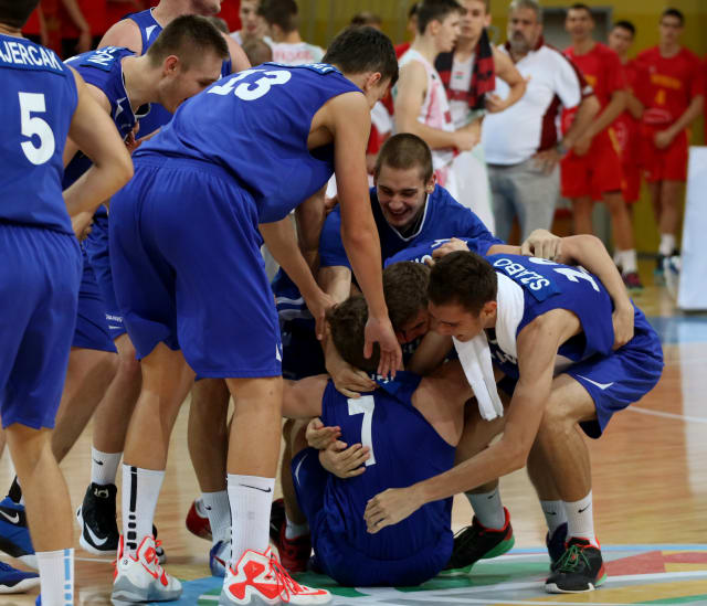 Zeliznak and the others now want to take the momentum from last summer into the tournament at home. And that group of players will have gone through a lot together, which should help the team in Division A.Slovak Republic celebrate after Samir Hebibi (number 7) hit his decisive three-pointer to get the country to Division A.