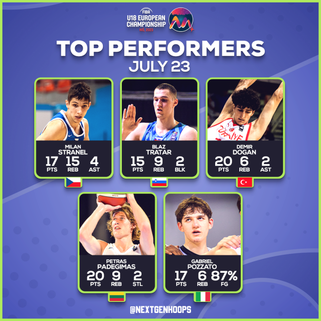 Rounding out the Top Performers is Italy's Gabriel Pozzato who finished with 17 points and 6 rebounds on 7-of-8 shooting from the field off the bench for an efficiency of 23.